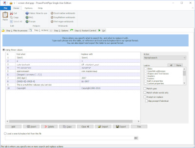 PowerPointPipe is designed as a hands-off tool requiring next to no user intervention, as you would expect for migrating large numbers of files. It copes with a myriad range of Microsoft PowerPoint bugs, such as restarting Microsoft PowerPoint every 1000 presentations to avoid memory errors. It also copes with the largest variety of problem presentations of any tool, documents of any tool, from password protected to corrupted documents. To use PowerPointPipe, you simply add a list of search/replace pairs, and for each one, specify where in the presentation it should be found. Then you tell it which files to process - that's it! See the WordPipe Marketplace, where authors share their expertly curated word lists to help you be more efficient. |